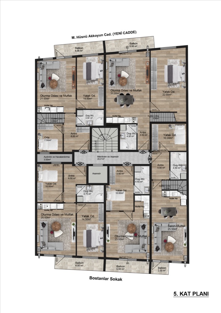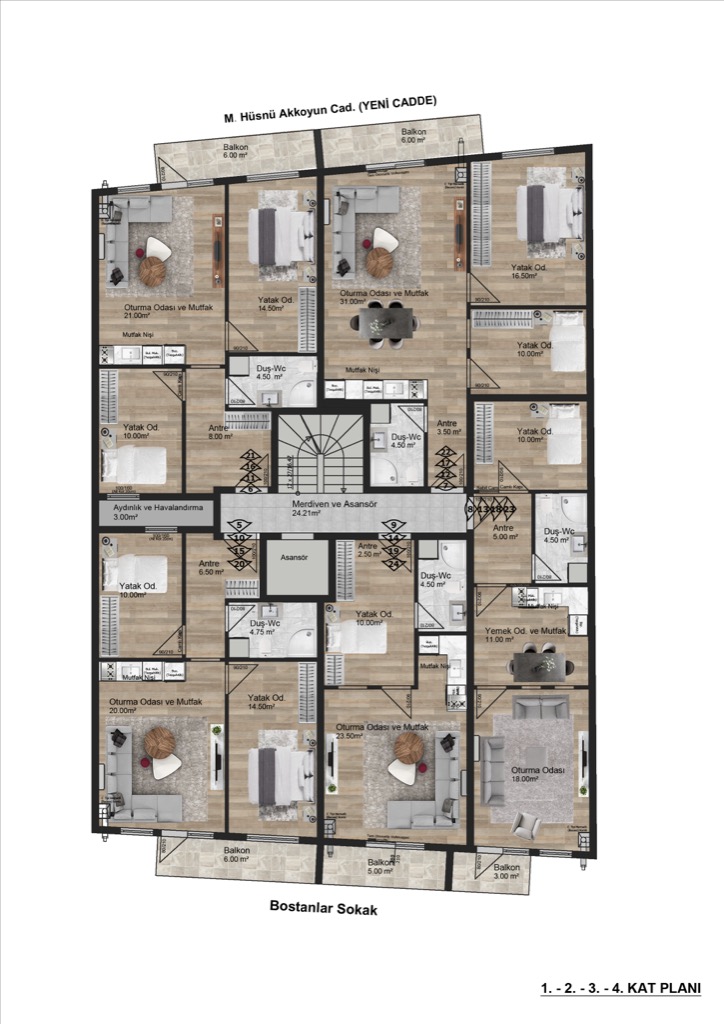 | No | Kat | Kullanım | m² | Durum |