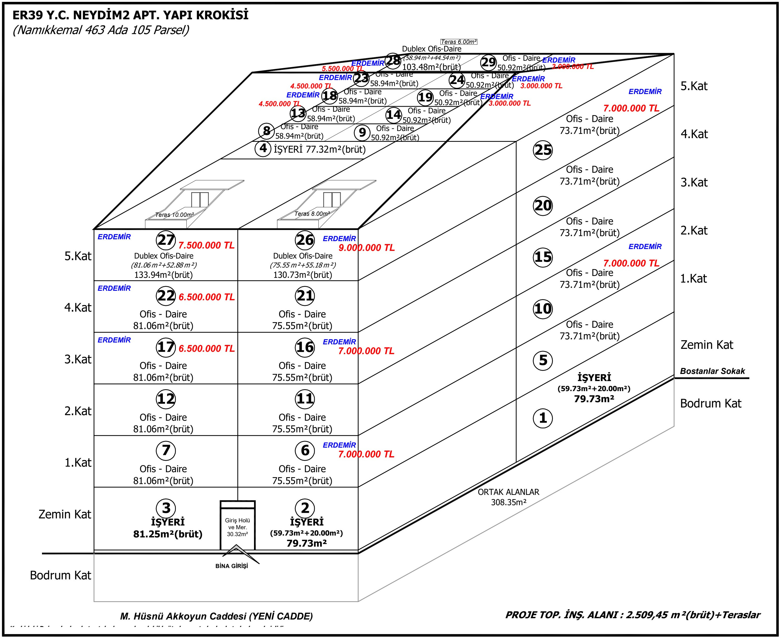 | 27 | 5.Kat | Dublex Ofis-Daire | 133.94 m² | SATIŞTA : 7.500.000 TL |