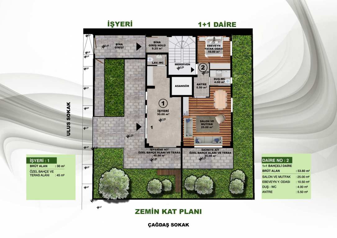 | 1 | İşyeri | 30,00+45,00 m2 | Hemen Öğrenin | Zemin Kat |