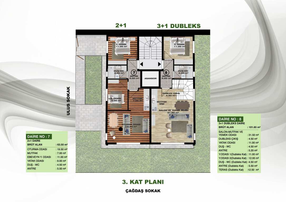 | 10 | 3+1 | Dublex Daire | 101,65 m2 | SATILDI | 4.Kat |